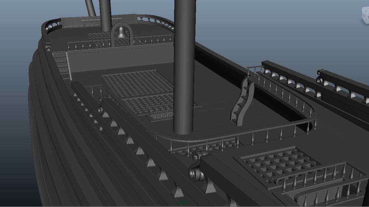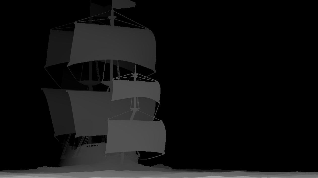 The project was almost entirely visualized using Mental Ray (no longer supported). 3delight was used to speed particles rendering. In the end, we have got a layer-cake of sequences - renderings of the ship, water and foam. A depth channel has been added to all sequences.